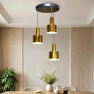 • Đèn thả phòng khách-bàn ăn, mâm inox vàng phối phale nghệ thuật DC-104