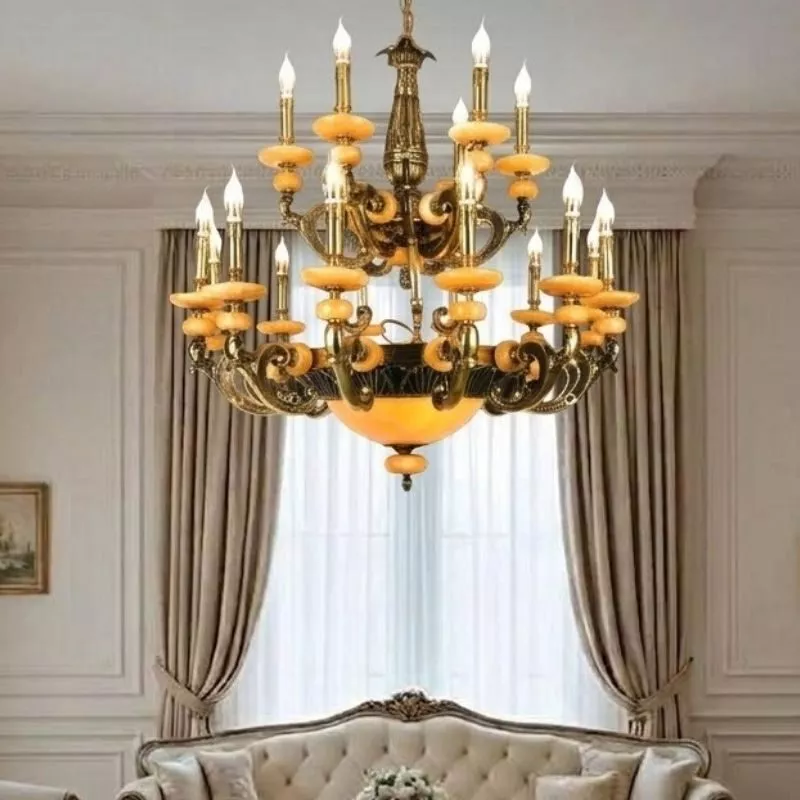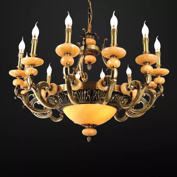 Đèn chùm đồng nguyên chất, chao đá ngọc cao cấp DCD-122