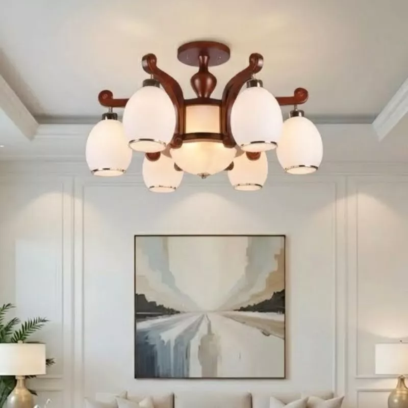 Đèn cổ điển, khung gỗ, phối chao thủy tinh đục OCD-086