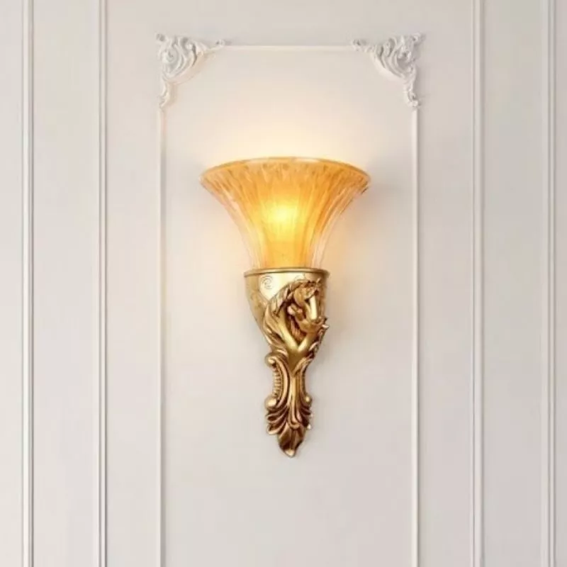 Đèn gắn tường cổ điển, chao thủy tinh vàng VCD-442