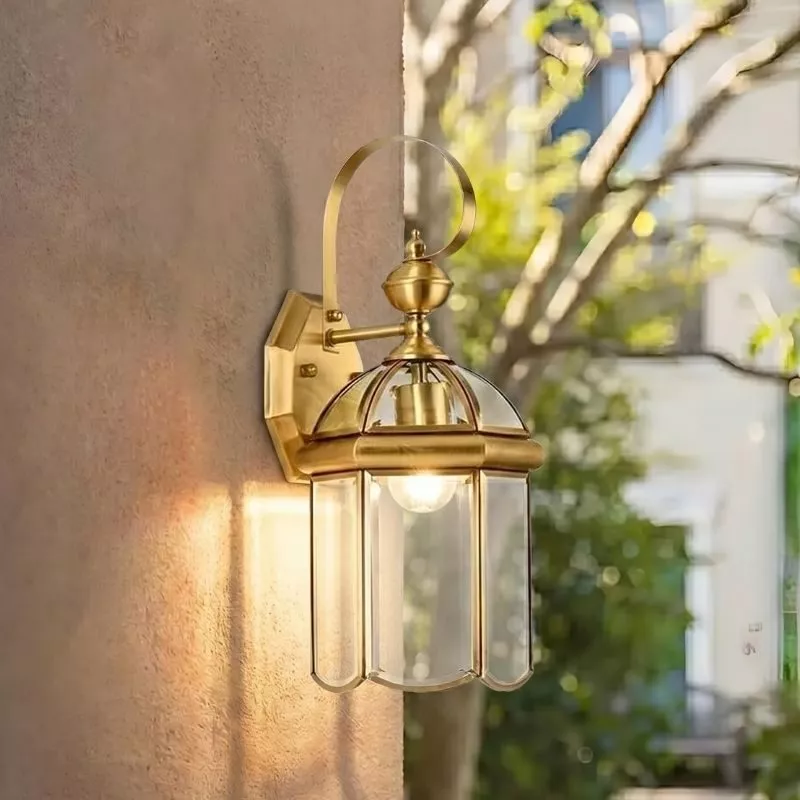 Đèn gắn tường ngoài trời, kim loại đồng phối kính trong VD-140