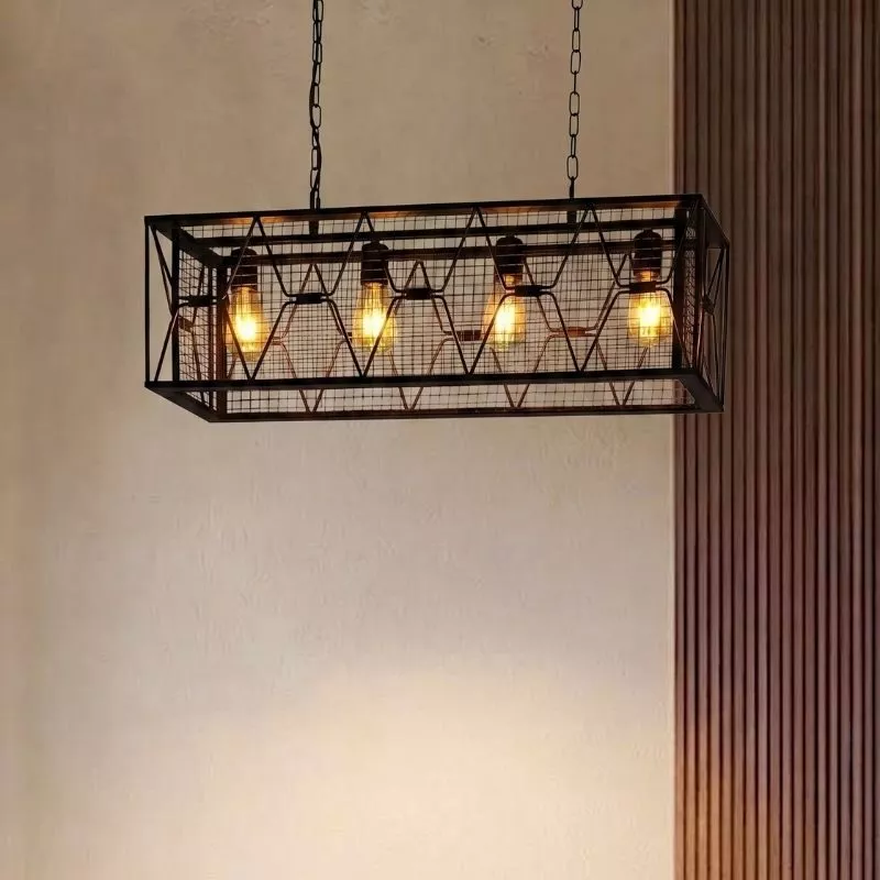 Đèn thả Decor , là hạng mục khá quan trọng với mỗi công trình. Sản phẩm đèn thả trang trí thả lưới sắt phong cách Retro, kiểu ngang, khung chữ nhật TDC-98 với chất liệu kim loại sơn tĩnh điện, sử dụng bóng Led bulb E27, dễ dàng trong việc lắp đặt, đảm bảo được ánh sáng, trang trí cho mọi công trình. Giúp giải quyết rất tốt trong việc tìm kiếm đèn trang trí bàn ăn, đèn trang trí nhà hàng, trang trí quán cafe, trang trí cho shop, trang trí văn phòng….