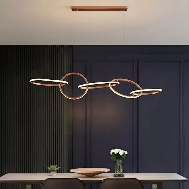 Đèn thả hiện đại thiết kế 5 vòng đan xen inox si hồng cao cấp DC-678