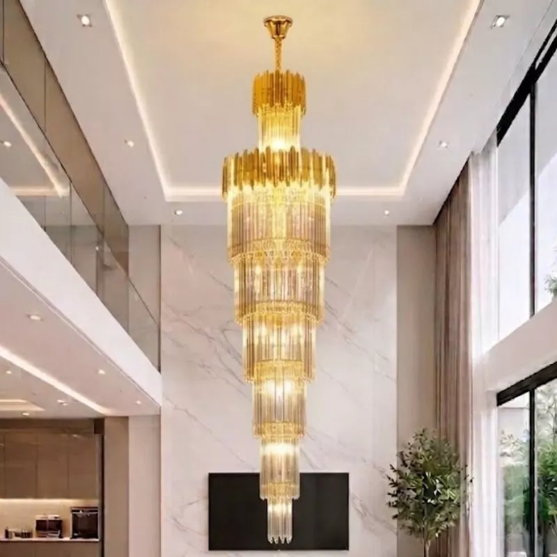 Đèn trang trí thông tầng – sảnh, Phale phối kim loại cao cấp DTT-131 với thiết kế tinh tế, sáng tạo, cùng chất liệu kim loại si vàng đồng,kết hợp phale K9 cao cấp, sử dụng nguồn sáng Led E14-3000K, là lựa chọn rất tốt để hoàn thiện không gian sảnh-thông tầng của mọi công trình. Sản phẩm phù hợp cho rất nhiều công trình từ nhà ở, biệt thự, Penthouse, sảnh văn phòng, nhà hàng, khách sạn, trung tâm tiệc cưới-hội nghị, nhà mẫu