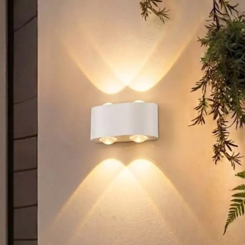 Đèn tường Led hiện đại ngoài trời, hắt 4 tia, thiết kế khối bầu VNT-334