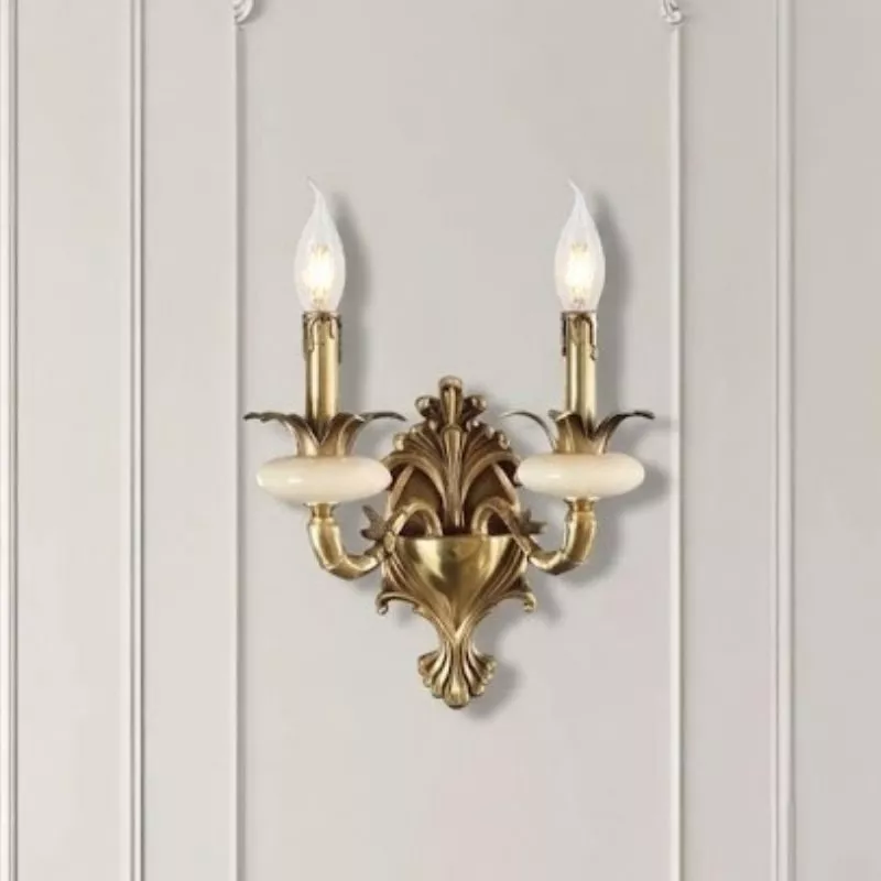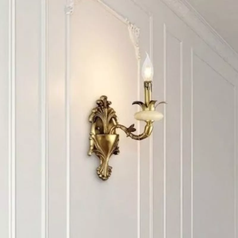 Đèn vách đồng nguyên chất thiết kế tay nến,chao đá cẩm thạch VD-151