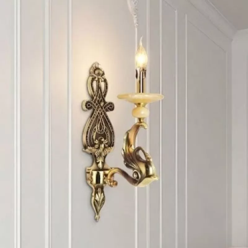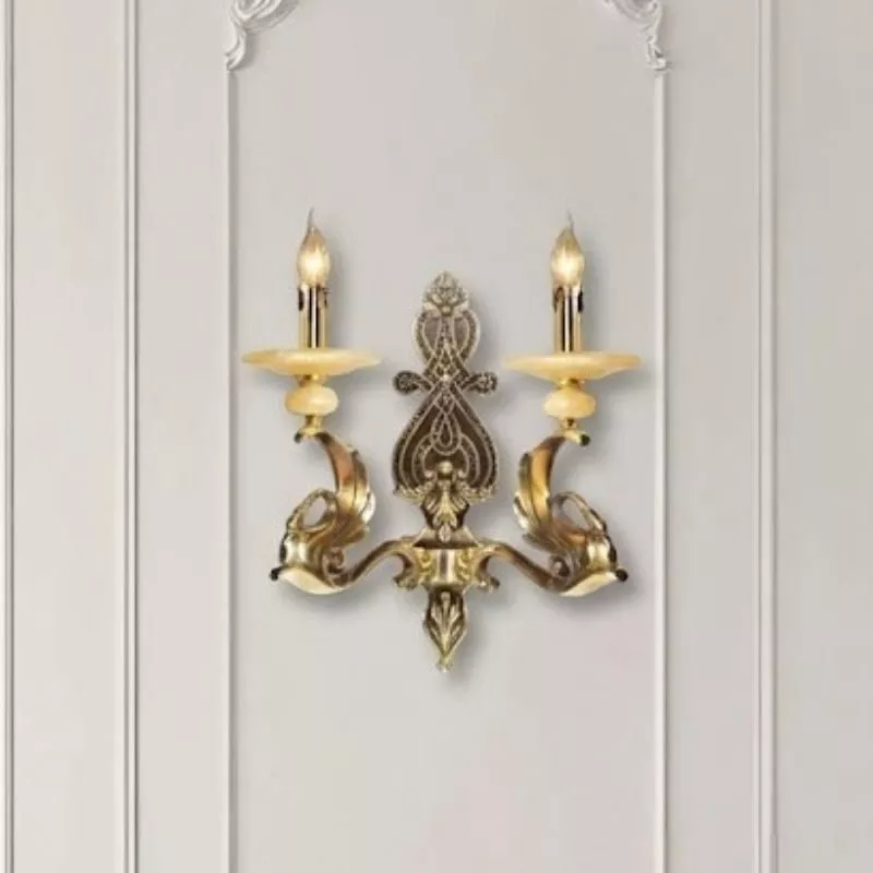 Đèn vách đồng nguyên chất thiết kế tay nến, chao đá cẩm thạch VD-217
